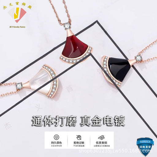 Original price USD$2.47 - Original price USD$2.47Original price USD$2.47USD$4.44 - USD$4.93USD$4.44 - USD$4.93Current price USD$4.44Wholesale Fan-shaped Small Skirt Necklace Women's Jewelry White Bei Agate All-match Collar Chain Woolen Chain Women's First Jewelry