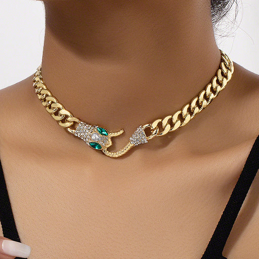 Original price USD$0.75 - Original price USD$0.75Original price USD$0.75USD$1.50USD$1.50 - USD$1.50Current price USD$1.50Wholesale Fashion Metal Rhinestone Snake Clavicle Chain Personality Temperament Necklace
