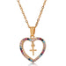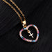 Wholesale Jewelry Micro-inlaid Color Zircon Geometric Cross Pendant Heart-shaped Necklace