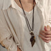 Wholesale Retro Bohemian Ethnic Style Leaf Long Cut Out Geometric Clavicle Chain Zen Style Versatile Personalized Sweater Chain
