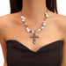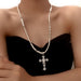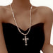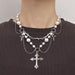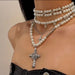 Wholesale Stacked Cross Pearl Long Necklace Niche Clavicle Chain