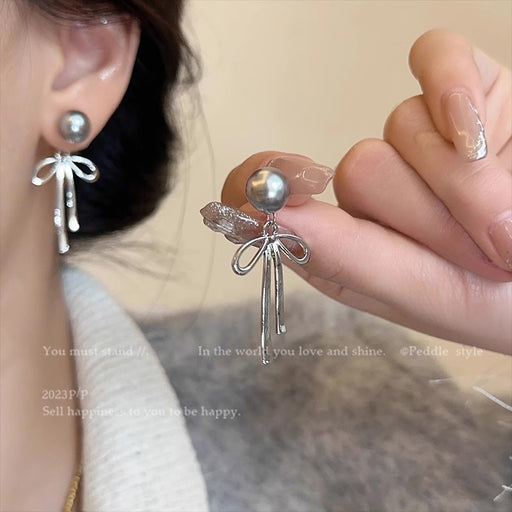 Original price USD$0.48 - Original price USD$0.48Original price USD$0.48USD$0.86USD$0.86 - USD$0.86Current price USD$0.86Wholesale Pearl Quality Hemp Gray Two-Wear Bow Silver Needle Earrings