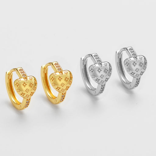 Original price USD$0.85 - Original price USD$0.85Original price USD$0.85USD$1.93USD$1.93 - USD$1.93Current price USD$1.93Wholesale Zirconia-studded heart-shaped metal earrings with a patterned design.