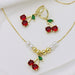 Wholesale Cherry Fruit with Color Zirconium Earrings Necklace Combination suit Copper Beads with Pearl