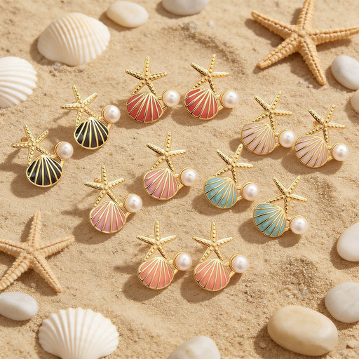 Original price USD$0.47 - Original price USD$0.47Original price USD$0.47USD$1.12USD$1.12 - USD$1.12Current price USD$1.12Wholesale Stainless Steel Starfish Shell Pearl Earrings Marine style Earrings