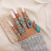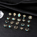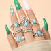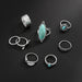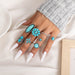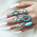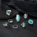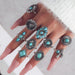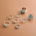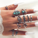 Wholesale Ethnic Style Retro Turquoise Carved Feather Ring Fashionable and Personalized 8-Piece Combination Ring Set