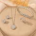 Wholesale Titanium Steel Full Diamond Four-Leaf Clover Necklace Earrings Ring Bracelet Set