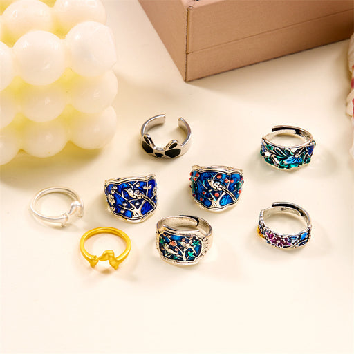 Original price USD$0.27 - Original price USD$0.38Original price USD$0.27USD$0.48 - USD$0.68USD$0.48 - USD$0.68Current price USD$0.48Wholesale Indigo oil Blue Plum Blossom ring niche national fashion ethnic style ring