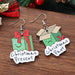 Wholesale Christmas gift box earrings, vintage wooden double-sided asymmetrical earrings