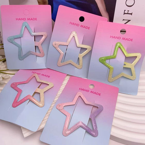 Precio original USD$0.06 - Precio original USD$0.06Precio original USD$0.06USD$0.10USD$0.10 - USD$0.11Precio actual USD$0.10Wholesale Large gradient fine sparkling pentagram side, forehead with broken hair, cute star hairpin hair accessory