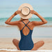 Wholesale One piece triangle swimsuit with abdominal folds, women's cross back swimsuit with beautiful back