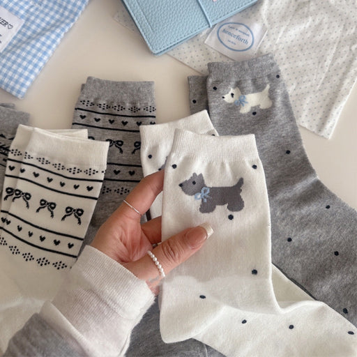 Wholesale Mid length socks with butterfly knots, heart-shaped rolled edge cotton socks, boneless pile socks