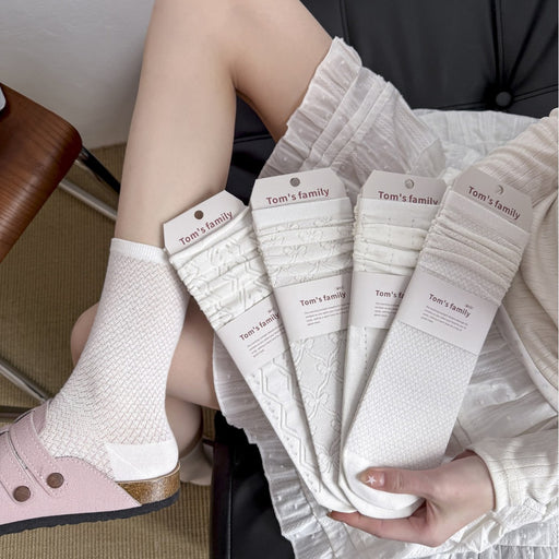 Wholesale Thin mesh breathable boneless stacking socks with three-dimensional letters, college style socks