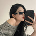 Wholesale High end fashion street photography sun protection double B box cat eye sunglasses