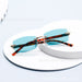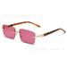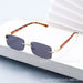 Wholesale Wood grain temple metal frameless sunglasses, irregular square trendy sunglasses