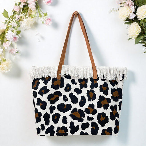 Precio original USD$3.48 - Precio original USD$3.48Precio original USD$3.48USD$6.26 - USD$6.95USD$6.26 - USD$6.95Precio actual USD$6.26Wholesale New tassel leopard print shoulder bag, large capacity, versatile, fashionable with zipper bag, beach bag, women's tote bag