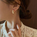 Wholesale Irregular double-layer pearl earrings with feminine temperament, plain face earrings, silver needles