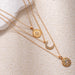 Wholesale Multi layered circular diamond necklace with geometric luxury and high-end feel, moon and sun pendant, collarbone chain