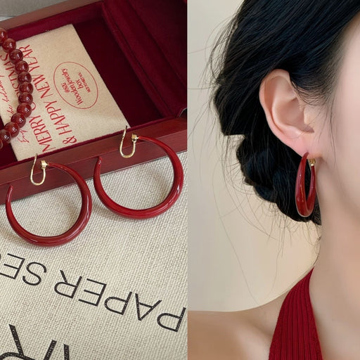 Precio original USD$0.41 - Precio original USD$0.41Precio original USD$0.41USD$0.83USD$0.83 - USD$0.83Precio actual USD$0.83Wholesale Exaggerated high-end temperament metal red earrings women's geometric square long earrings