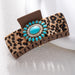 Wholesale Bohemian Turquoise Western Grabber Retro Leopard Sequin Leather Ethnic Style Shark Clip