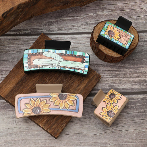 Precio original USD$0.51 - Precio original USD$0.51Precio original USD$0.51USD$0.93 - USD$1.03USD$0.93 - USD$1.03Precio actual USD$0.93Wholesale West Wind Sunflower Cactus Leather Shark Clip Grab Clip Women Hairpin