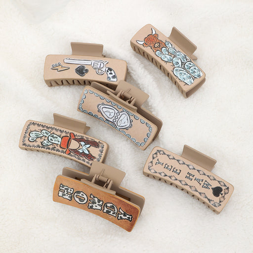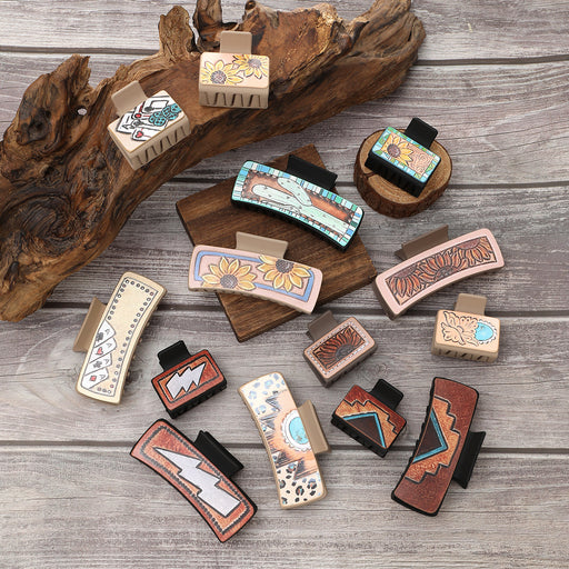 Precio original USD$0.84 - Precio original USD$0.84Precio original USD$0.84USD$1.51USD$1.51 - USD$1.51Precio actual USD$1.51Wholesale western wind leather cow pattern acrylic hair claw clip ladies