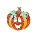 Wholesale brooch with funny smiling pumpkin, witch and broom painted in oil