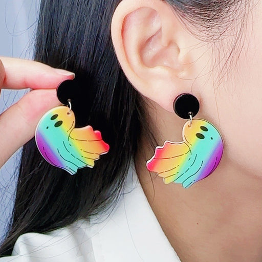 Precio original USD$0.63 - Precio original USD$0.63Precio original USD$0.63USD$1.26USD$1.26 - USD$1.26Precio actual USD$1.26Wholesale shiny earrings contrast color cartoon ghost acrylic earrings creative personality earrings ear jewelry
