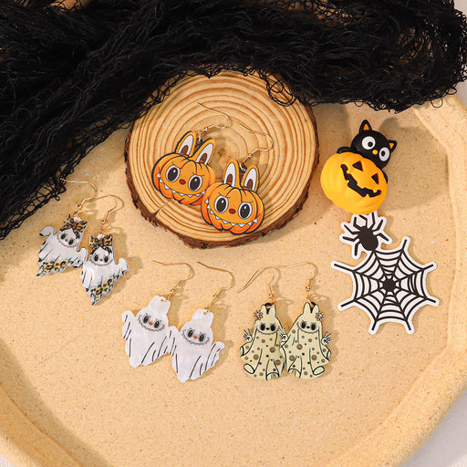 Precio original USD$0.58 - Precio original USD$0.58Precio original USD$0.58USD$1.05 - USD$1.17USD$1.05 - USD$1.17Precio actual USD$1.05Wholesale Earrings Acrylic Double-Sided Long-Legged Witch Pumpkin Man Skull Horror Atmosphere Earrings
