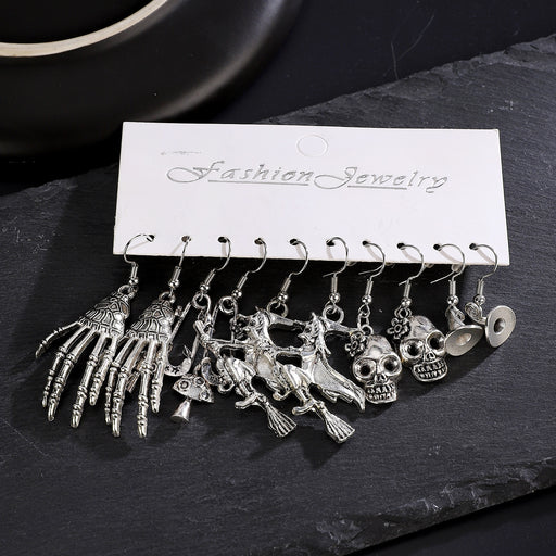 Precio original USD$0.49 - Precio original USD$0.54Precio original USD$0.49USD$0.93 - USD$1.08USD$0.93 - USD$1.08Precio actual USD$0.93Wholesale Exaggerated Earrings European and American Silver Pumpkin Skull Claw Earrings 5-Piece Set Earrings