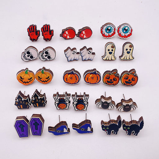 Precio original USD$0.21 - Precio original USD$0.21Precio original USD$0.21USD$0.38USD$0.38 - USD$0.38Precio actual USD$0.38Wholesale Pumpkin Skull Ghost Earrings S-Shaped Wooden Earrings Party Accessories
