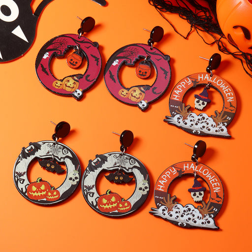 Precio original USD$0.56 - Precio original USD$0.56Precio original USD$0.56USD$1.06 - USD$1.11USD$1.06 - USD$1.11Precio actual USD$1.06Wholesale Acrylic colorful printed Boo pumpkin skull personality creative earrings earrings