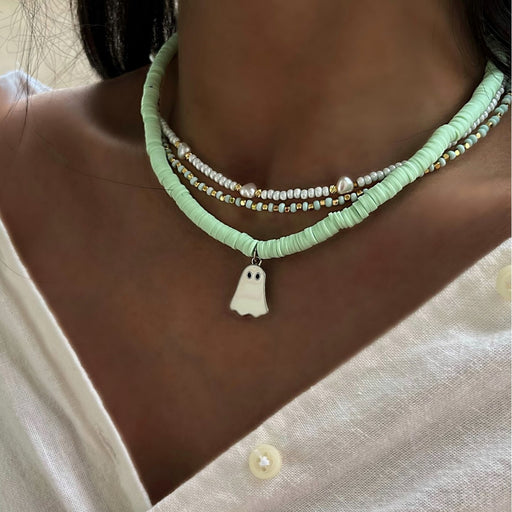 Precio original USD$0.83 - Precio original USD$0.83Precio original USD$0.83USD$1.50USD$1.50 - USD$1.50Precio actual USD$1.50Wholesale Jewelry Soft Pottery Beaded Necklace Ghost Pendant Clavicle Chain for Women