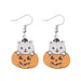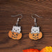 Wholesale Cute Cat Pumpkin Funny Pendant Earrings Wooden Gothic Style Double-sided Earrings