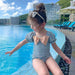 Wholesale Children's one-piece swimsuit bow checkered swimsuit cross elastic bubble sleeve swimsuit