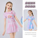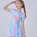 Wholesale Children's swimsuit new swimsuit, girls' cartoon swimsuit, sun protection quick drying medium and large children's short sleeved skirt one-piece swimsuit