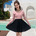 Wholesale Hot spring conservative high-end long sleeved swimsuit youthful and energetic women's split flat angle swimsuit covering the belly