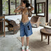 Wholesale Lace retro plaid bikini neck tie, low waist drawstring, hot spring swimsuit for women