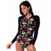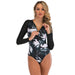 Wholesale Long sleeved surfing suit, zipper one-piece swimsuit, printed swimsuit