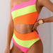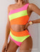 Wholesale New color blocking bikini swimsuit with a feminine feel, featuring an open waist and sloping shoulders one-piece swimsuit