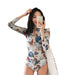 Wholesale New slimming long sleeved zipper floral triangle one-piece swimsuit diving suit