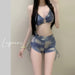 Wholesale Swimsuit vacation tie dye blue three-point sports split flat angle bikini top three piece set