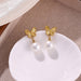 Wholesale Titanium Steel Butterfly Pearl Earrings 18K Gold Plated