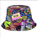 Wholesale geometric graffiti retro fisherman hat printed double-sided all-match basin hat outdoor sun hat
