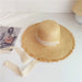 Wholesale Big brim frayed Lafite grass hat women's beach hat for beach vacation, sun protection and sunshade hat
