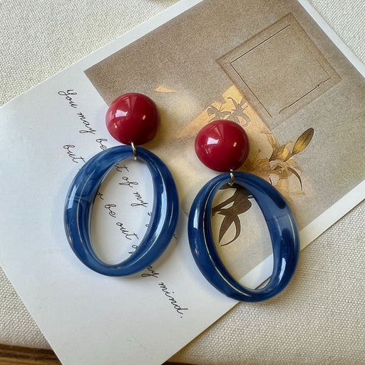 Prix d'origine USD$0.79 - Prix d'origine USD$0.79Prix d'origine USD$0.79USD$1.49 - USD$1.57USD$1.49 - USD$1.57Prix actuel USD$1.49Wholesale Red and blue contrasting geometric ring earrings exude a literary and artistic atmosphere, with personalized and niche earrings for women