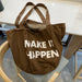 Wholesale Fashionable printed letter shoulder bag, casual versatile denim tote bag, large capacity canvas bag