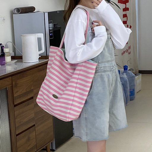 Prix d'origine USD$2.87 - Prix d'origine USD$2.87Prix d'origine USD$2.87USD$5.17 - USD$5.74USD$5.17 - USD$5.74Prix actuel USD$5.17Wholesale New tote bag with striped contrasting double-sided bag, large capacity canvas bag for class commuting