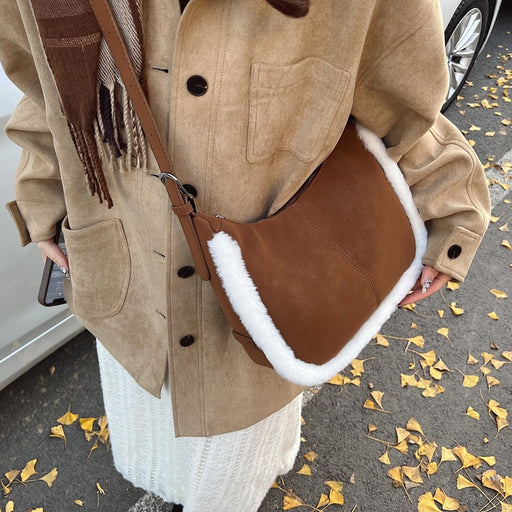 Prix d'origine USD$4.25 - Prix d'origine USD$4.25Prix d'origine USD$4.25USD$7.64 - USD$8.49USD$7.64 - USD$8.49Prix actuel USD$7.64Wholesale Suede large capacity casual plush crossbody bag, high-end commuting shoulder bag