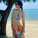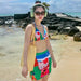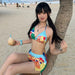 Wholesale Printed neck tie, split three-point shorts with skirt, bikini swimsuit